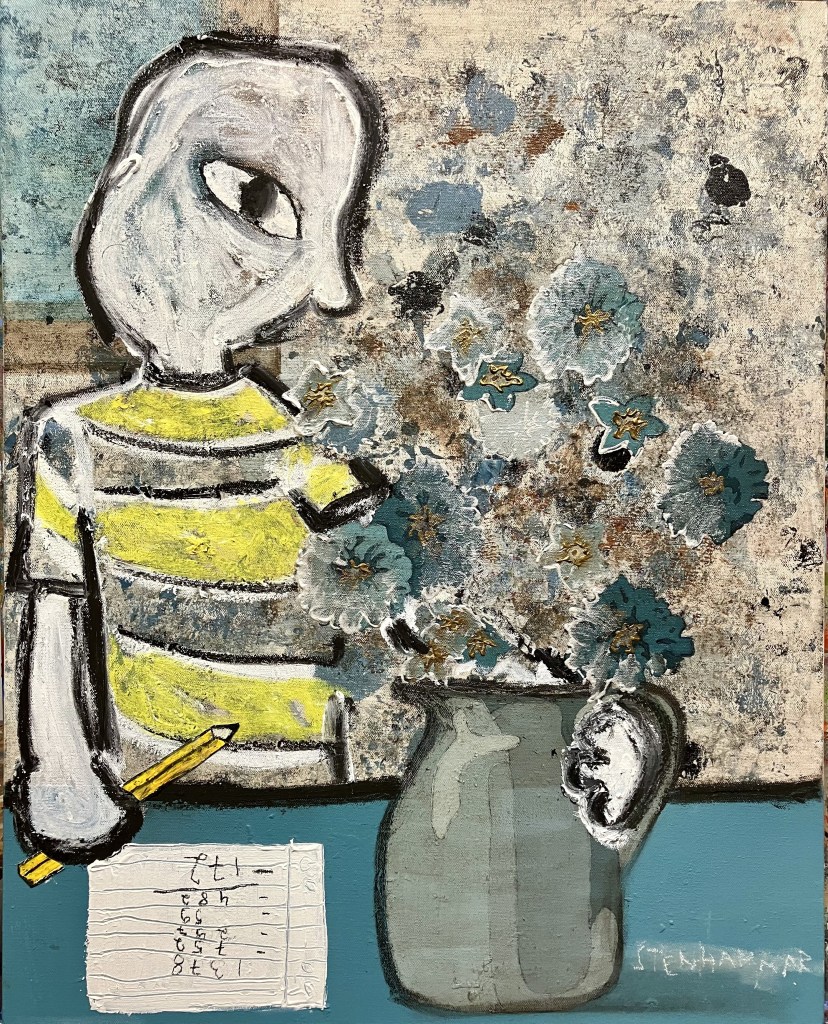 Acrylic and Oil stick on Canvas. 28 x 22 inches