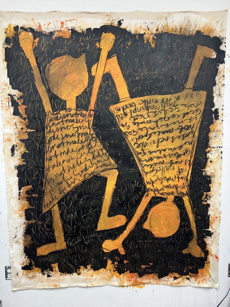2024, Acrylic and charcoal on canvas, app 80 x 53 inches