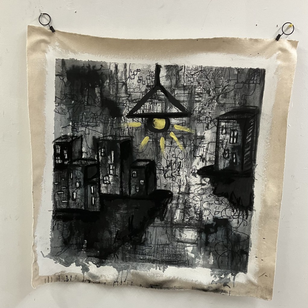 Ink, charcoal, marker, acrylic on canvas. App 40×40 “
